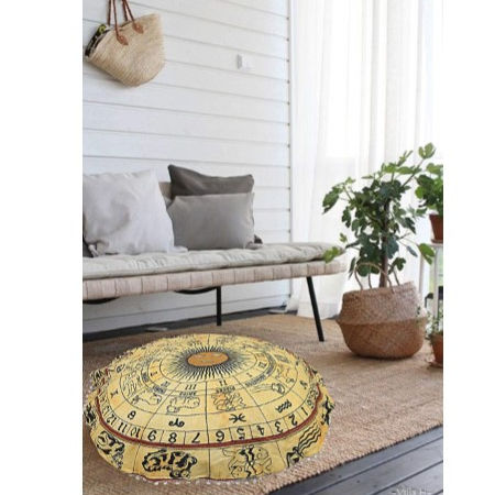 Signe du zodiaque soleil coton 32 pouces rond chaise tabouret Pouf couverture astrologie ethnique sol housse de coussin décor à la maison par les expéditeurs indiens