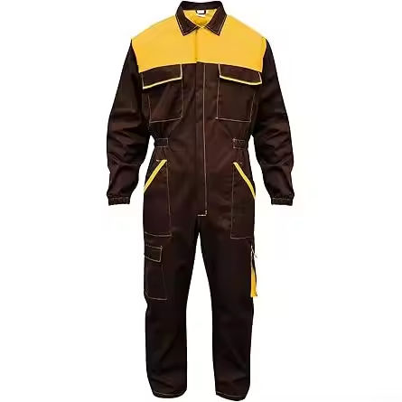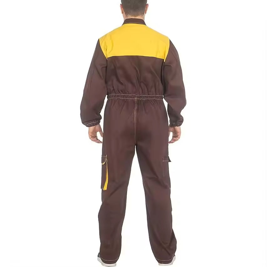 Zohan Creations – Combinaisons de travail unisexes confortables en coton 100 % marron et jaune, personnalisables OEM/ODM, avec plusieurs poches – Fournisseur d'ensembles de travail