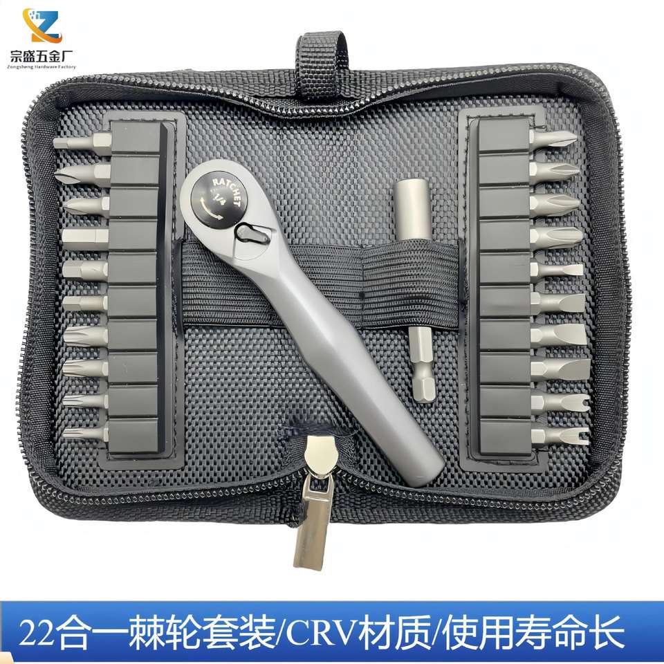 Jeu de tournevis à cliquet Zongsheng 22 en 1 en acier CRV avec boîte de rangement pour la réparation d'appareils électroménagers et de vélos