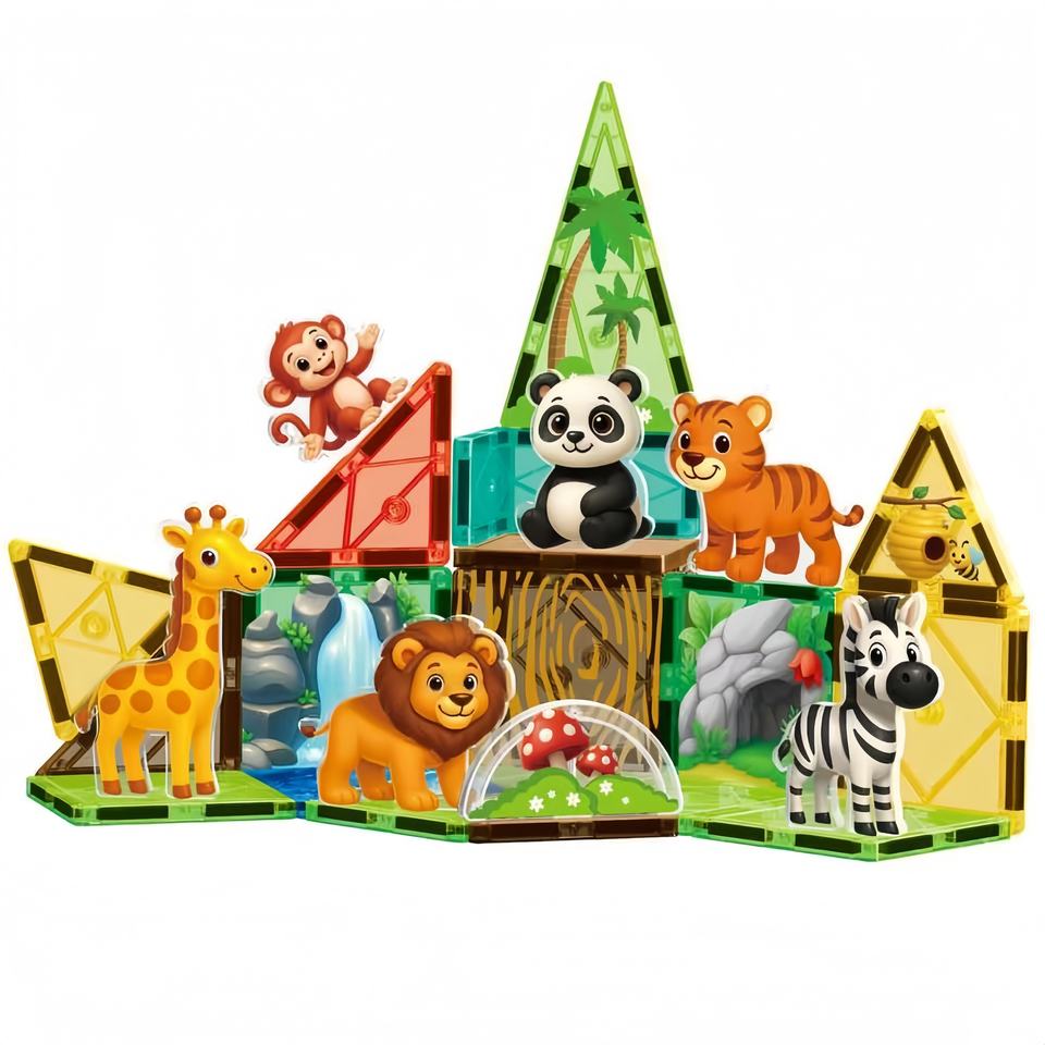 Animaux du zoo Blocs créatifs 3D Modèles de construction Jouets d'apprentissage précoce Ensemble de tuiles magnétiques pour tout-petits