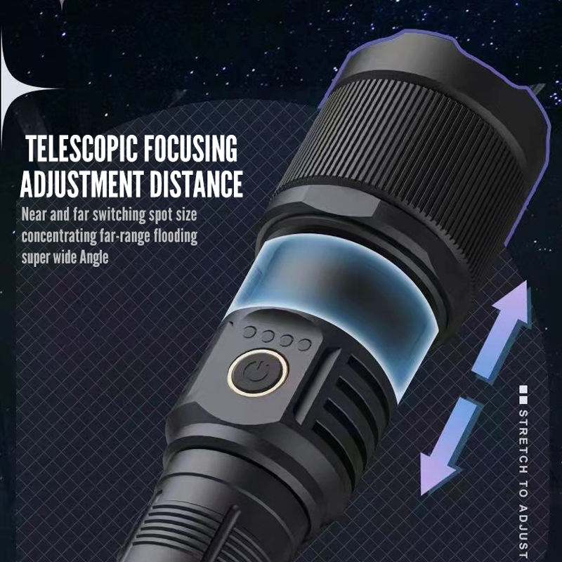 Zoom Rechargeable Tactique Lancer Torche Lumière Led Super Lumineux Haute Puissance Longue Portée Blanc LED Lampe de Poche