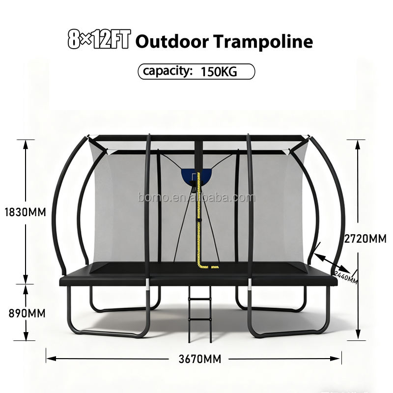 Trampoline rectangulaire de basket-ball d'extérieur Zoshine durable 8x12 pieds avec filet de sécurité et cadre galvanisé, design écologique