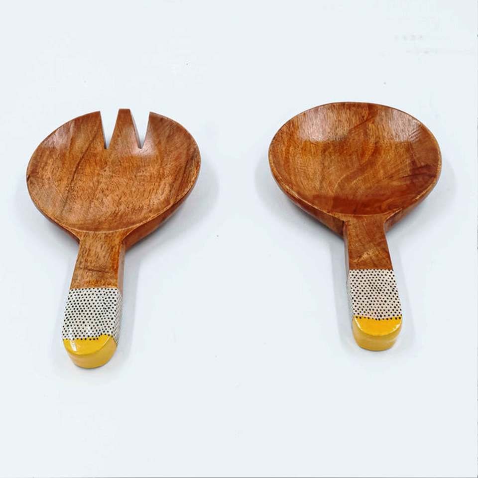 Zowie Ensemble de serveurs à salade 2 pièces Revêtement PVD en acier inoxydable de qualité acacia Outils à salade en acier inoxydable à taux d'usine 2pc Acacia
