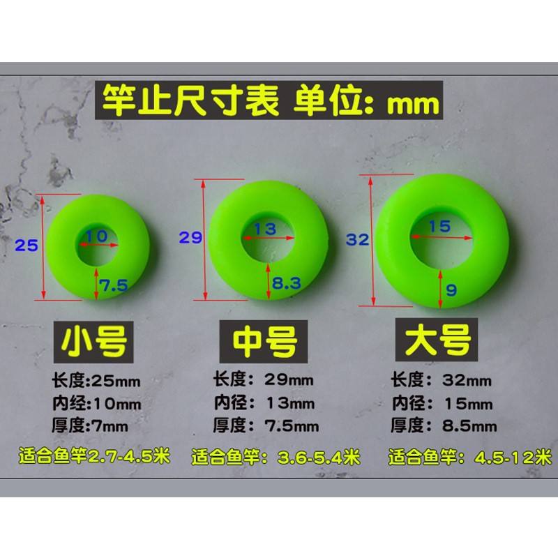 Ztc232 Stoppeur de canne en silicone vert, grande, moyenne, petite taille, matériel de pêche pour esturgeon