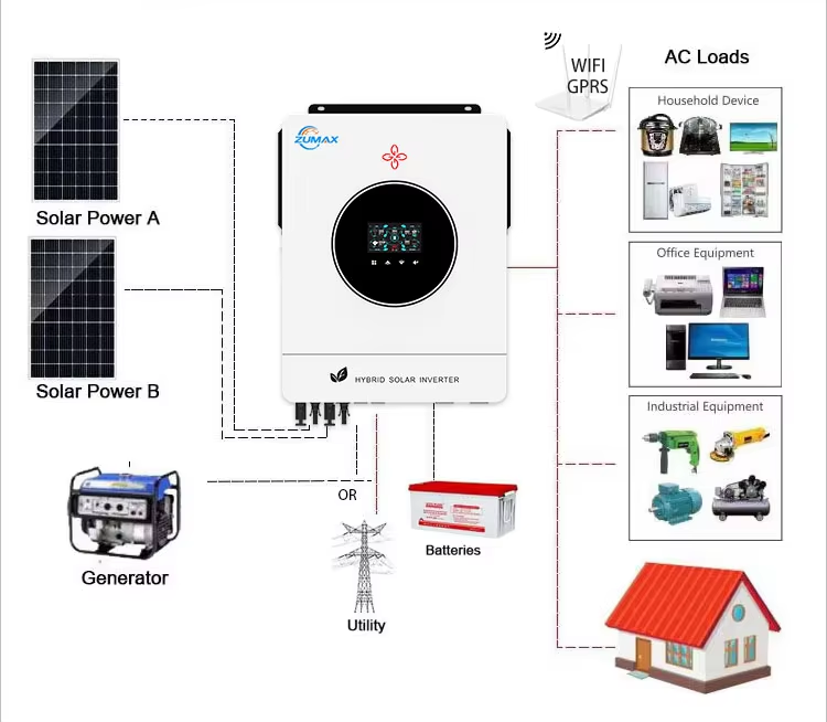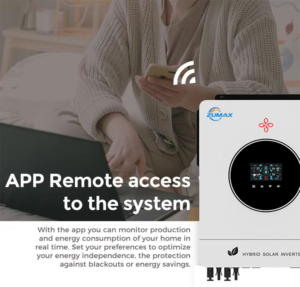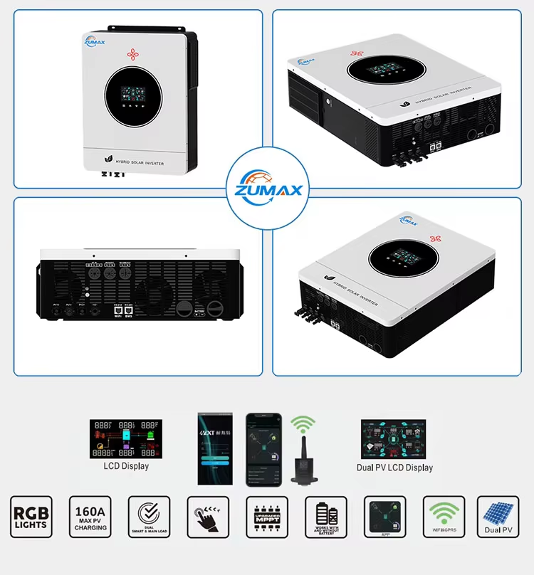 Convertisseur solaire Zumax 48V onduleur hybride nouvelle conception 6.2KW 8.2KW 10.2KW 5Kva sortie monophasée onde sinusoïdale pure MPPT