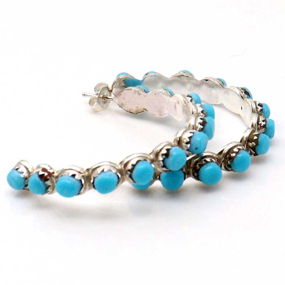 Boucles d'oreilles créoles Zuni avec turquoise par C. Walkaniwa