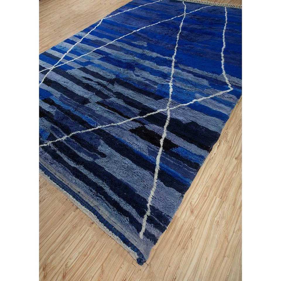 Tapis en laine noué à la main Zuri Blue, motif géométrique, tapis rectangulaire pour couloir, décoration de salon, taille 9x12 pouces, modèle Pae-4587