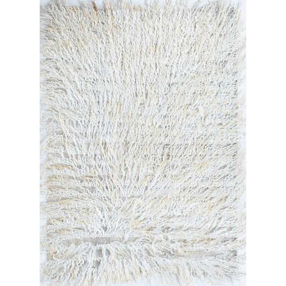 Tapis en laine noué à la main Zuri Ivory Pae-292, couleur unie, motif puzzle rectangulaire, pour usage domestique, salon, couloir, entrée, adolescents