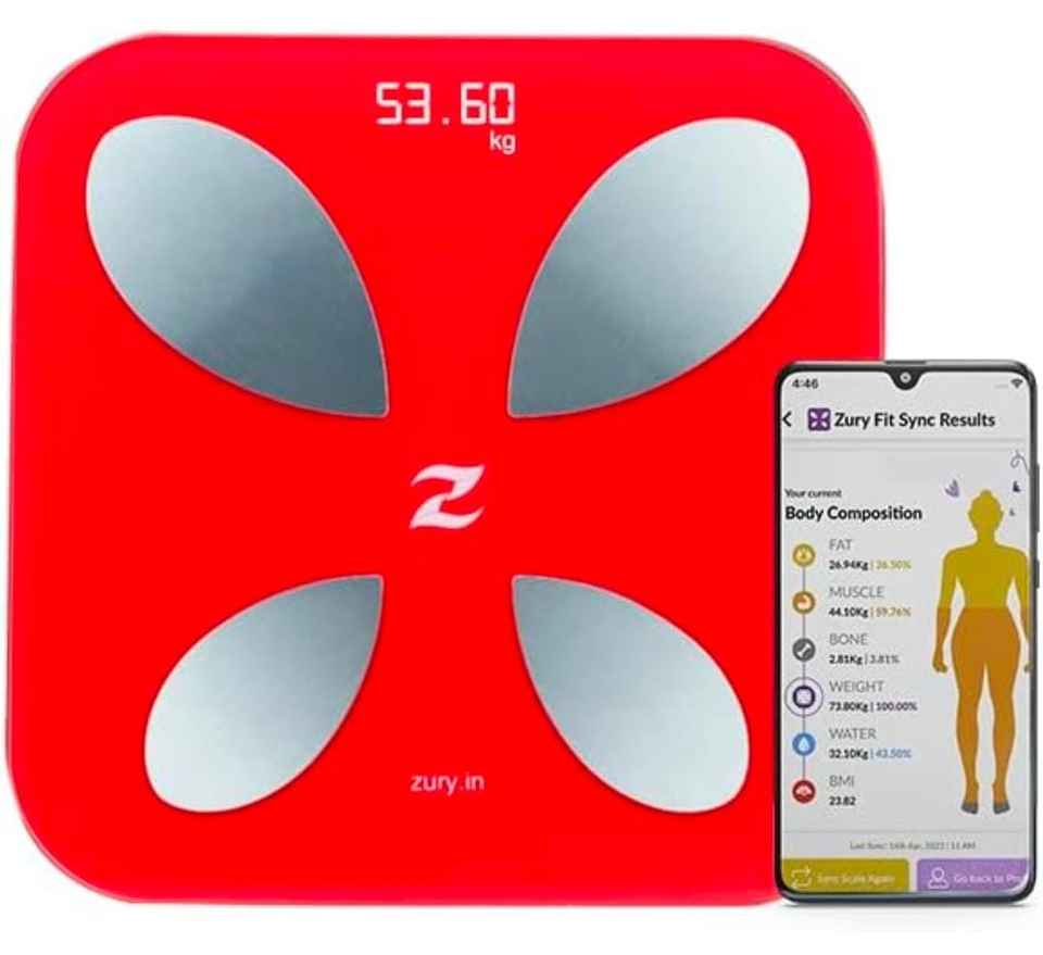 Balance connectée de cuisine Zury Smart Fitness, design mini, verre trempé, affichage numérique, batterie rechargeable, capacité 180 kg