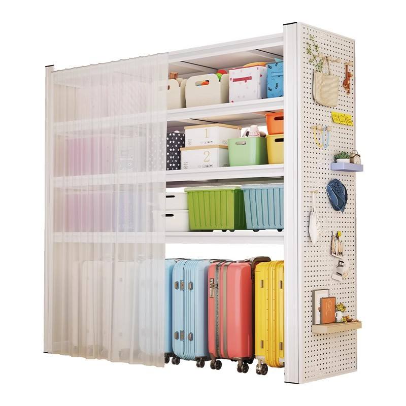 Étagère de rangement multicouche Zwj à 4 niveaux avec rideau anti-poussière pour balcon, salon, type sur pied, en fer