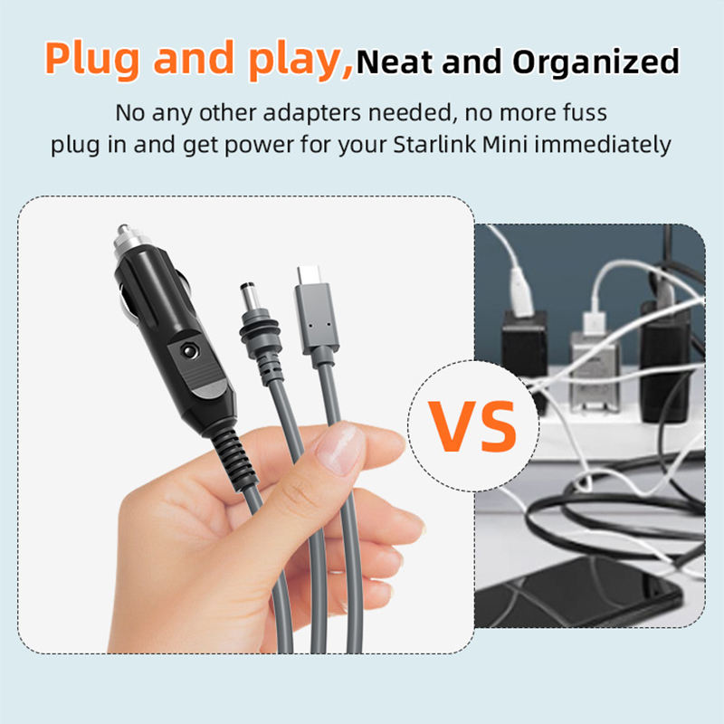 Câble d'Alimentation CC 3-en-1 pour Starlink Mini, Câble Rallonge Jack d'Alimentation 18AWG Compatible avec Starlink Mini Voiture, Câble USB-C vers CC