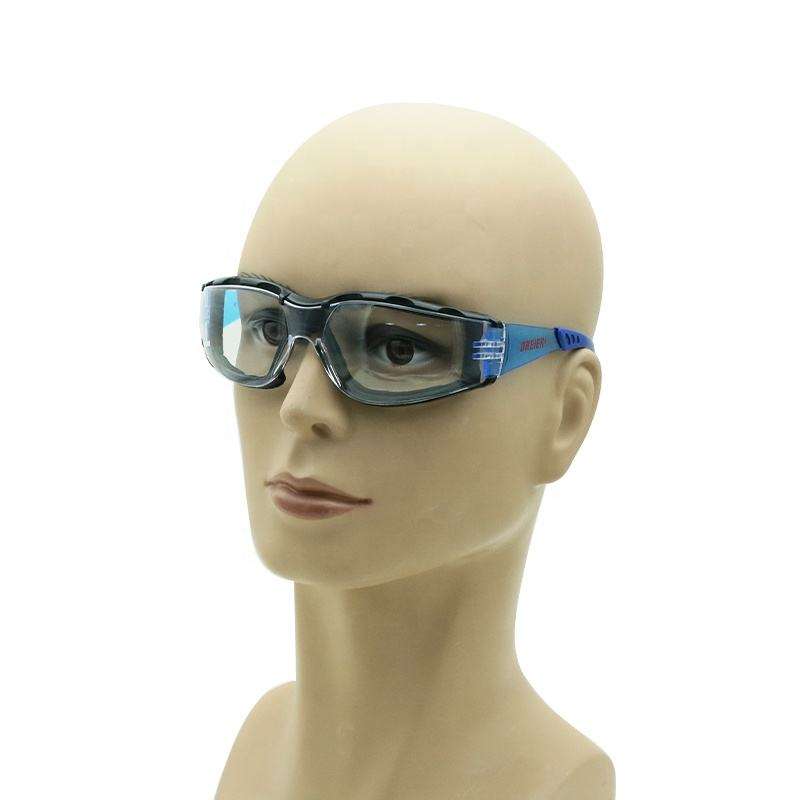 Lunettes de sécurité PC Blue Temple anti-rayures, anti-buée, EN166, avec joint en mousse amovible, protection des yeux pour le travail