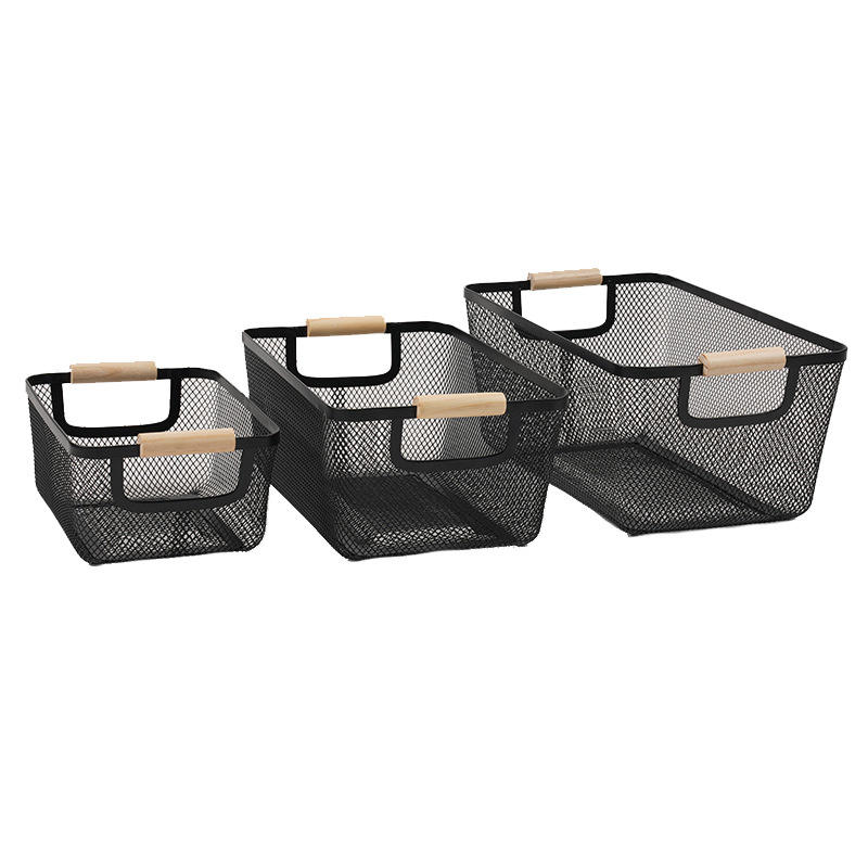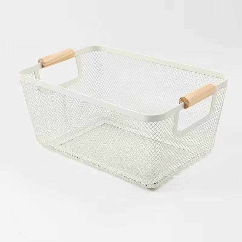 Panier en fil métallique en acier grillagé Panier organisateur de stockage Panier à fruits suspendu avec poignée en bois pour cuisine salle de bain