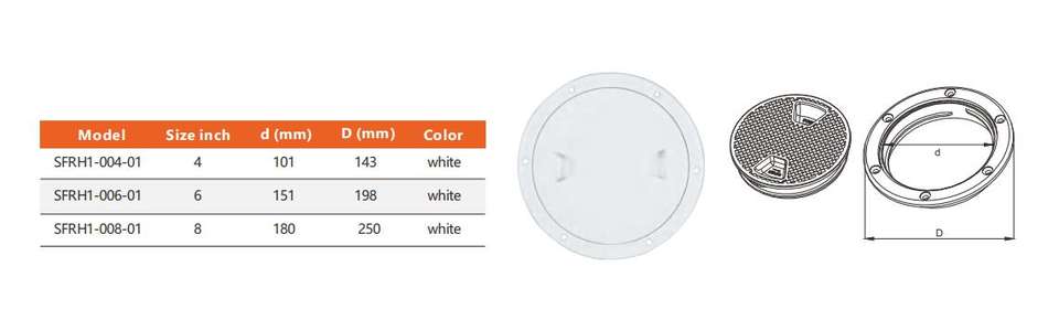 Trappe de bateau blanche 4 pouces 6 pouces 8 pouces ronde antidérapante avec couvercle amovible pour bateau marin yacht