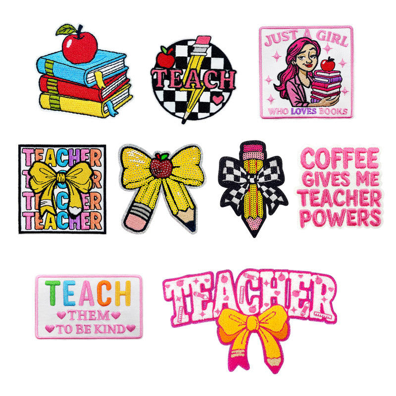 Enseigner à l'équipe à être gentil Patch de broderie Crayon à paillettes Arc à carreaux Fer sur Patch Patch de broderie de la journée des enseignants pour chapeau de camionneur