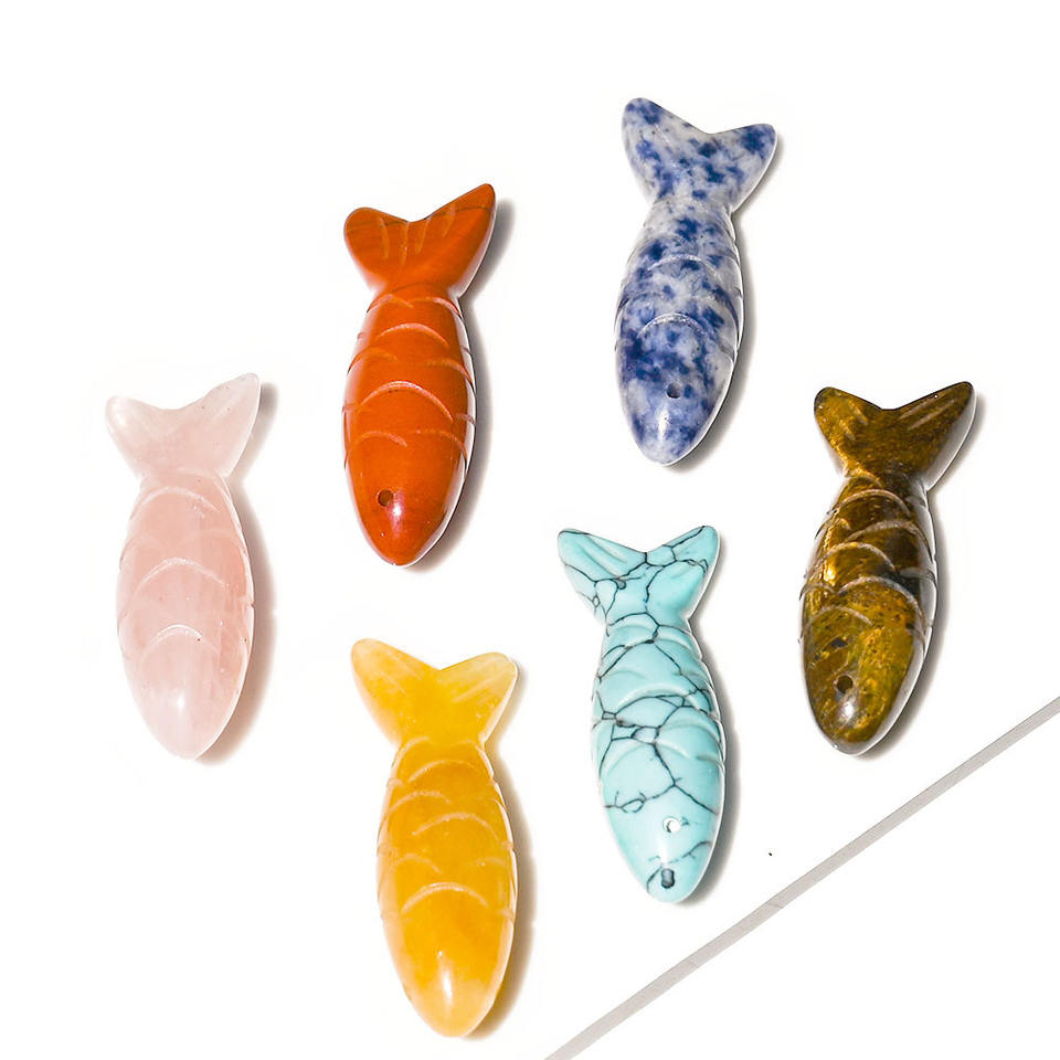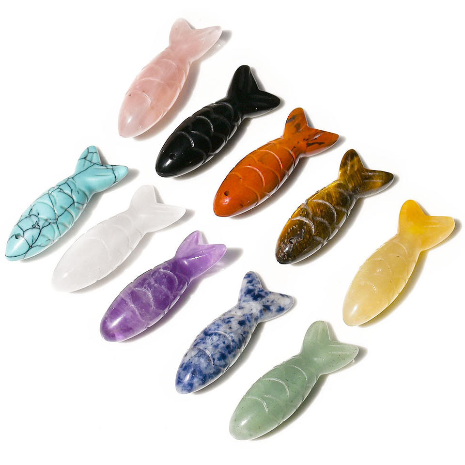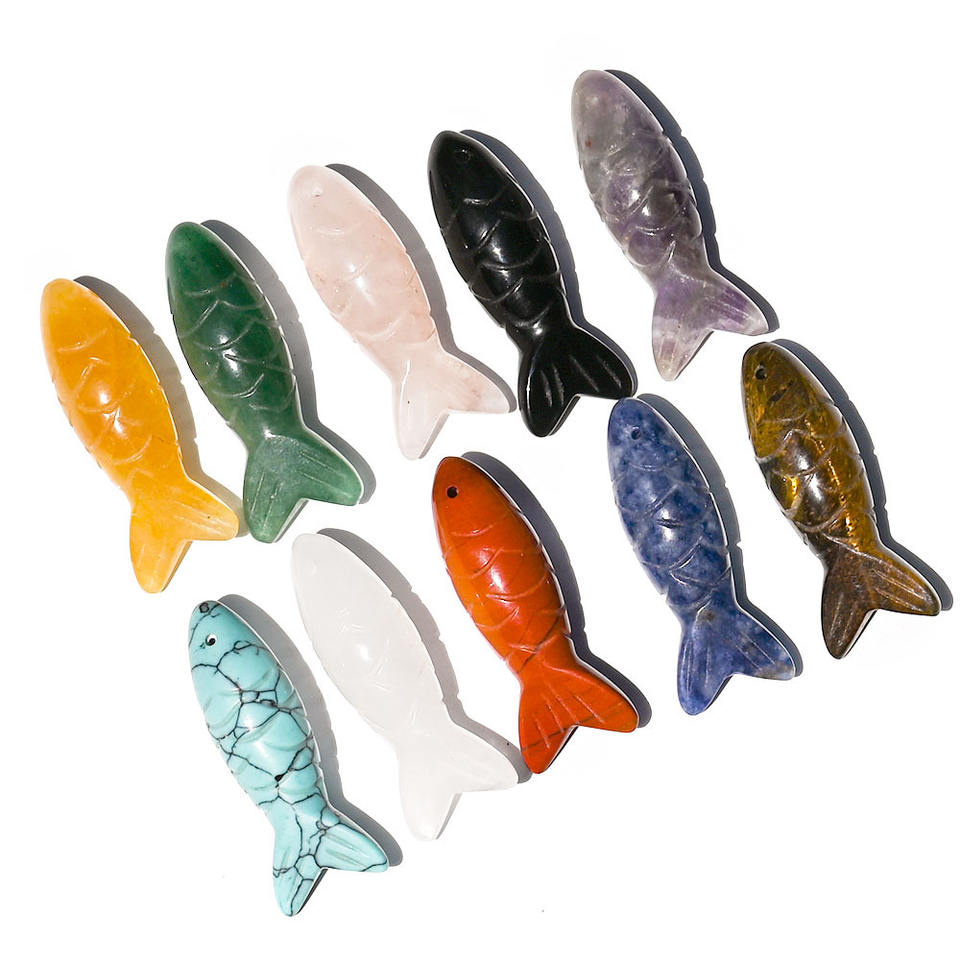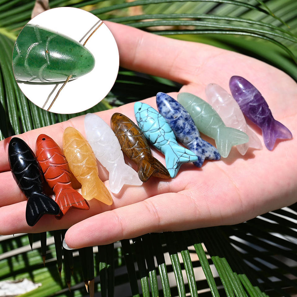 Pendentif animal sculpté en pierre semi-précieuse de cristal naturel, œil de tigre, améthyste, quartz rose, aventurine, ornement de koï