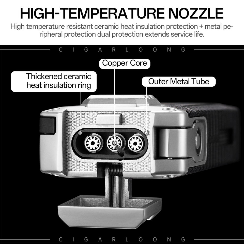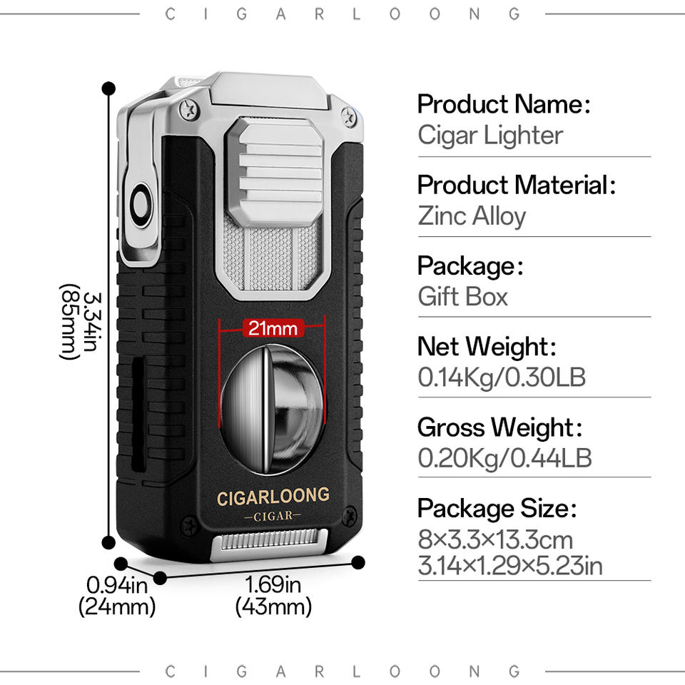 Briquet à cigare CIGARLOONG à 3 jets de flamme multifonction avec coupe-cigare en forme de V, poinçon à cigare, briquet portable coupe-vent rechargeable