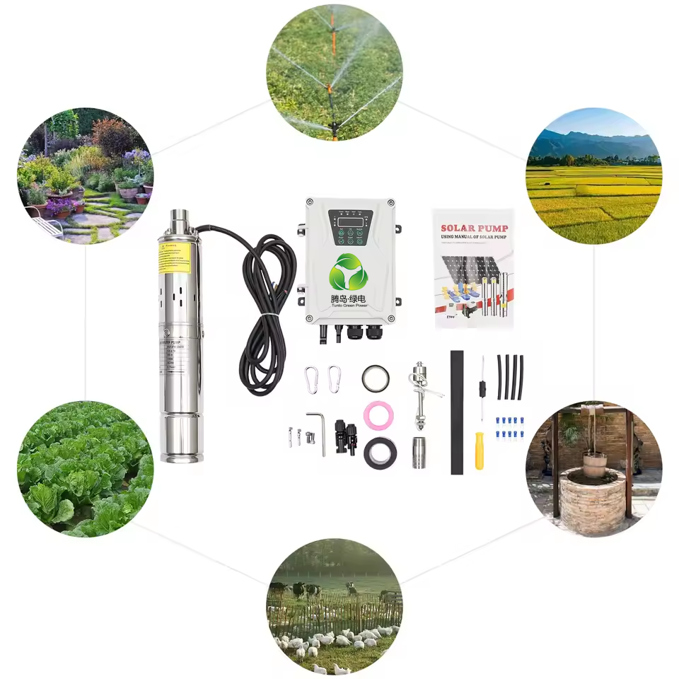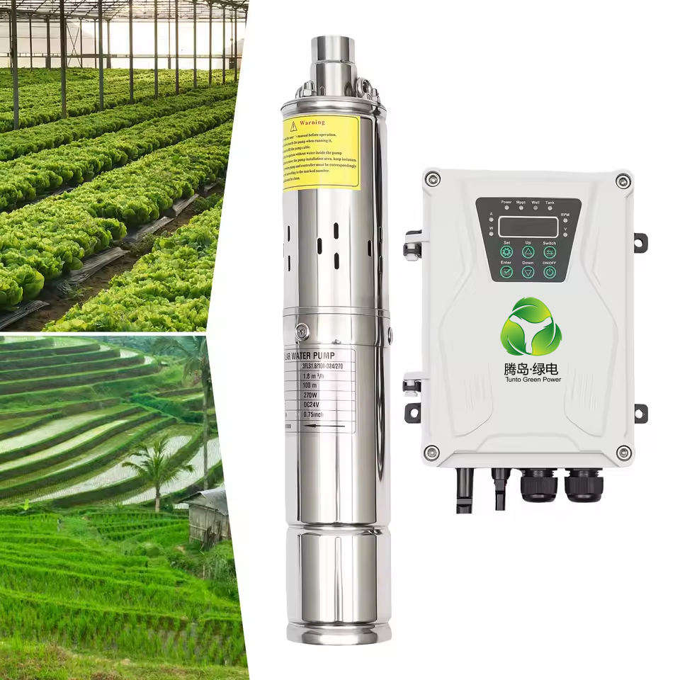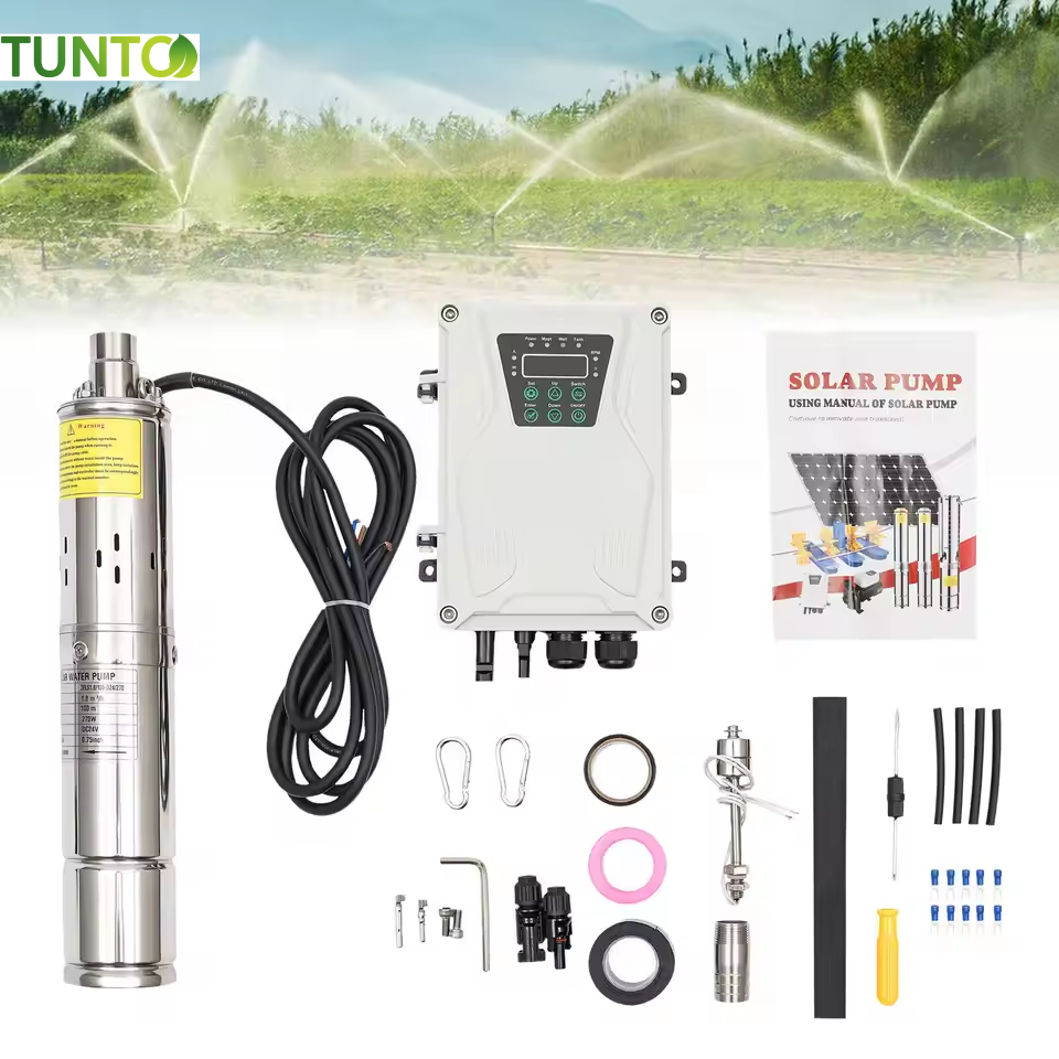 New 3inch 24VDC 270W 350W 550W Solar Brushless DC Water Pump with MPPT Controller for Off-Grid Irrigation Pond Use