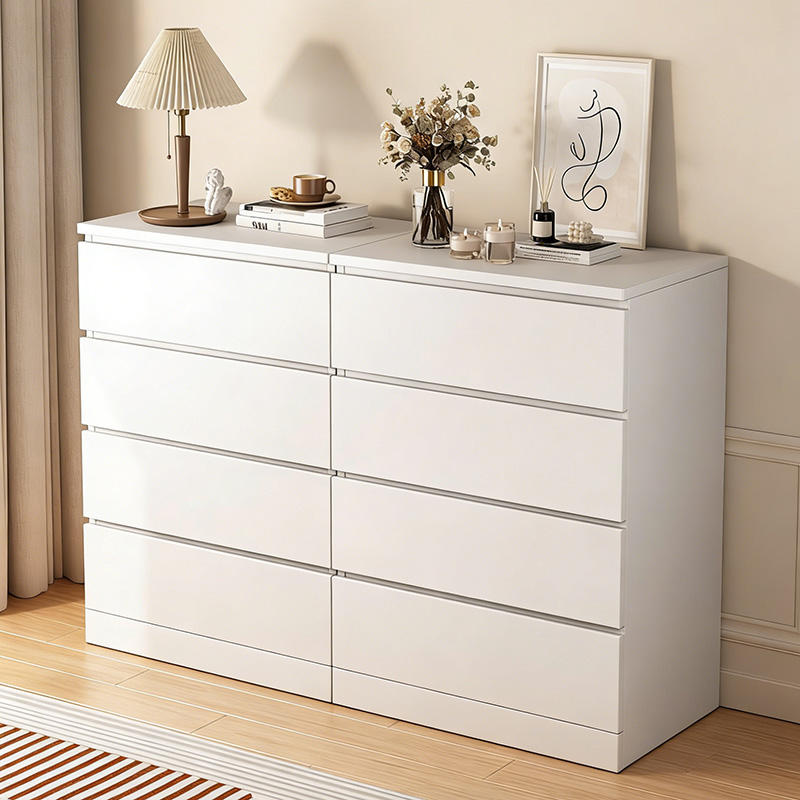 Commode haute blanche moderne sur mesure fabriquée en Chine, meuble de chambre à coucher, commode nordique en bois, armoire de rangement, 8 tiroirs