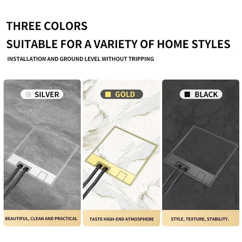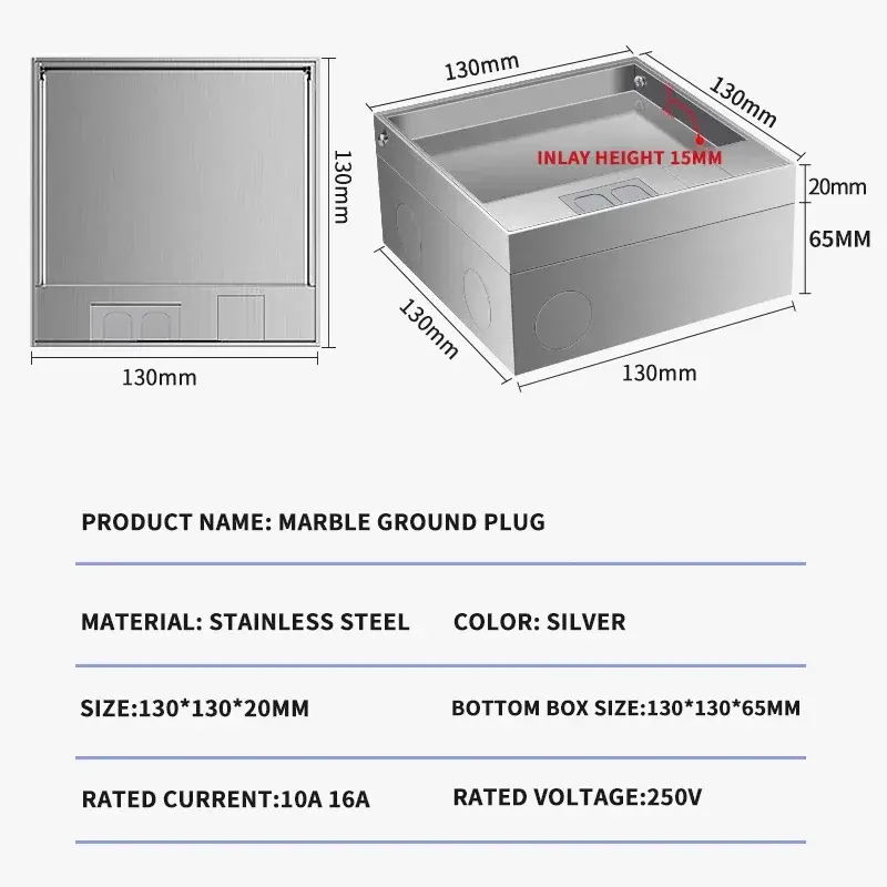Prise de sol encastrée de 130 mm US/FR/EU/IL/IT/Corée/Brésil, à encastrer dans une boîte dissimulée, prise de terre plate, fabriquée en Chine pour une utilisation à domicile ou au bureau