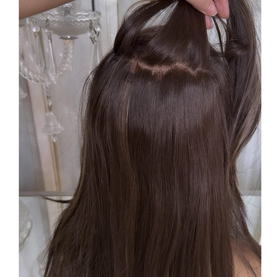 Perruque élégante marron en cheveux européens avec dentelle supérieure, perruque casher sans couture avec dentelle frontale et ligne de cheveux naturelle pour femmes souffrant de perte de cheveux