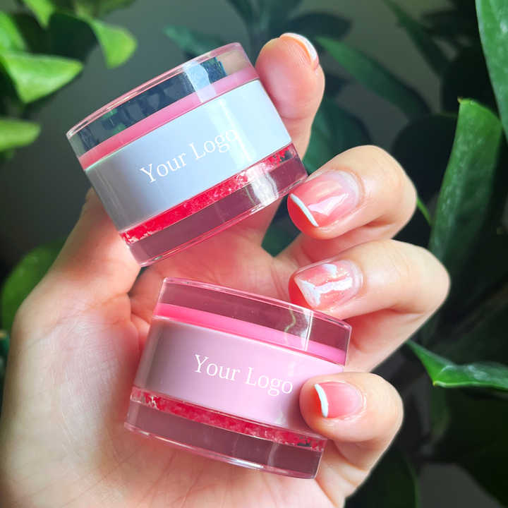 Gros Maquillage Marque Blanche Végétalien Gommage Lèvres aux Fruits 2 en 1 Personnalisé Baume à Lèvres Rose