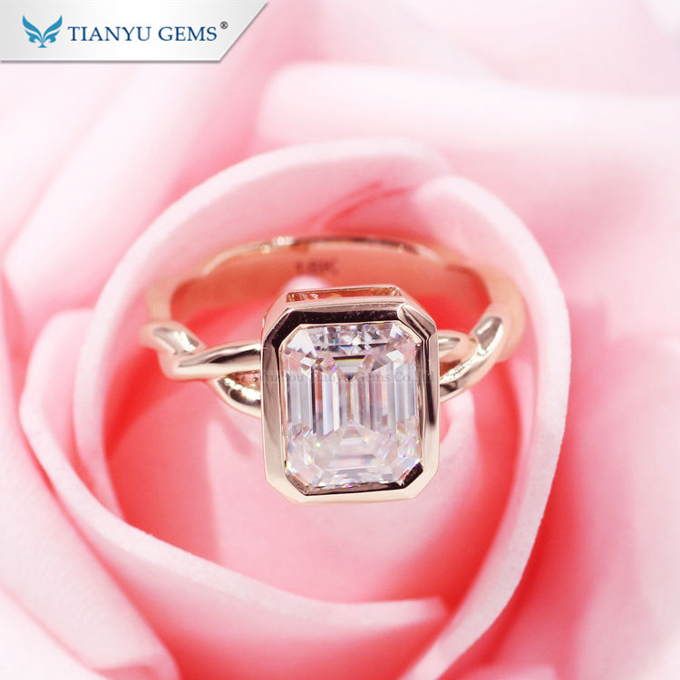 Haiktianyu — bague de mariage en pierre précieuse, bijou de monture en or rose, coupe émeraude, super blanc, ultraléger, 14k