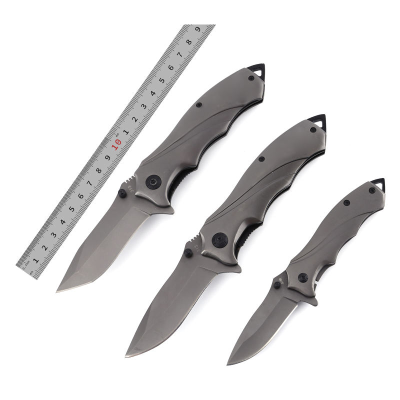 Couteau de poche pliant gris en acier inoxydable avec clip de ceinture, 3 pièces