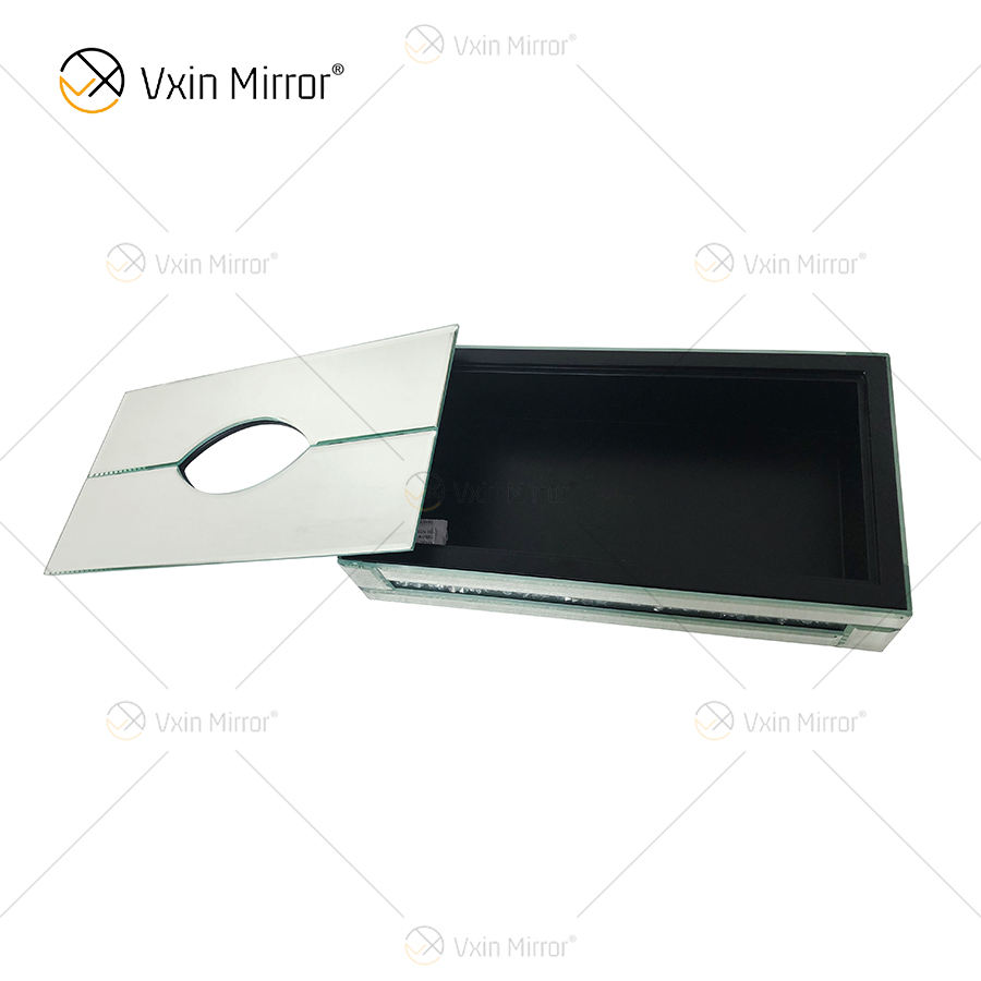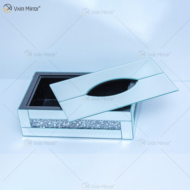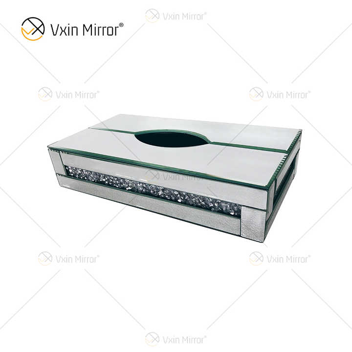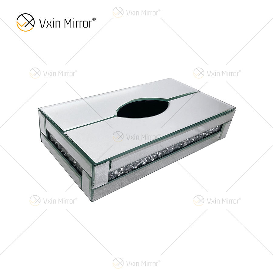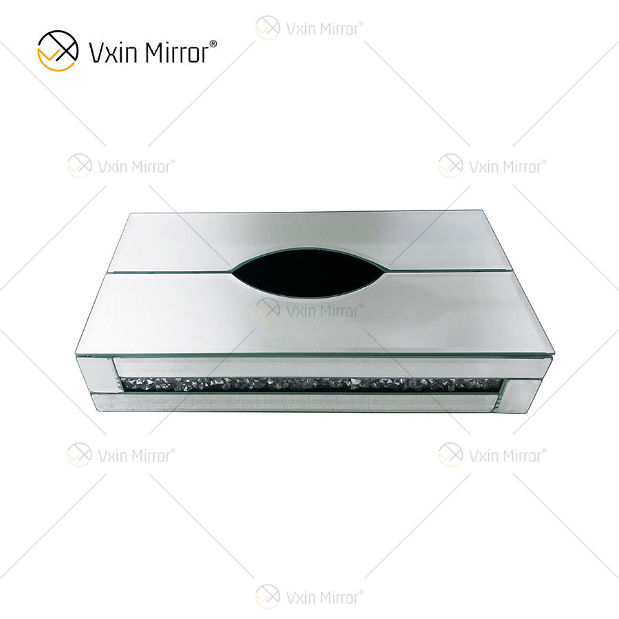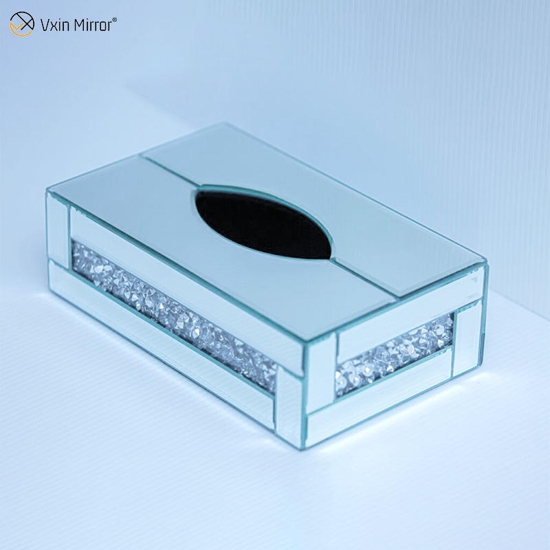 Décor à la maison WXB-001-2 Argent Verre Écrasé Diamant miroir boîte à mouchoirs