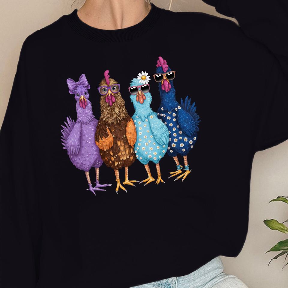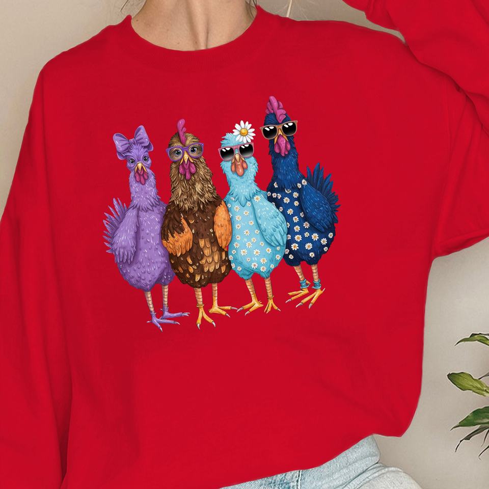 Anthropomorphic Chickens Illustrated Women's Printed Sweatshirts Casual Knitted Fabric Accessories