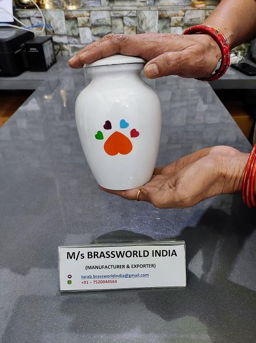 Urne de crémation décorative en aluminium pour les cendres humaines et les animaux de compagnie, fournitures commémoratives, urne de crémation commémorative, brasworld, inde