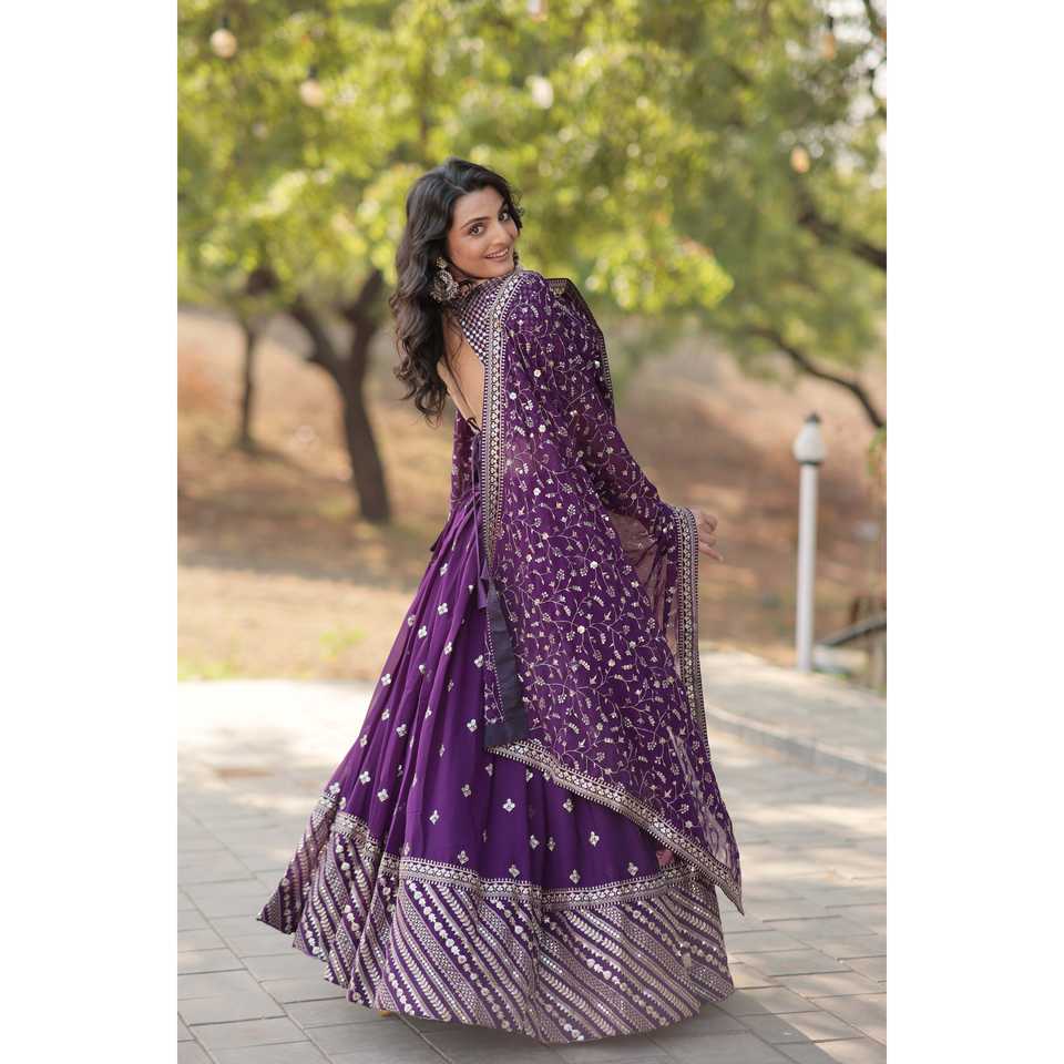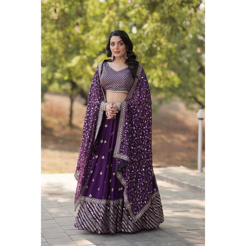 Amzing Faux Blooming paillettes avec threadBrodé travail lehenga choli