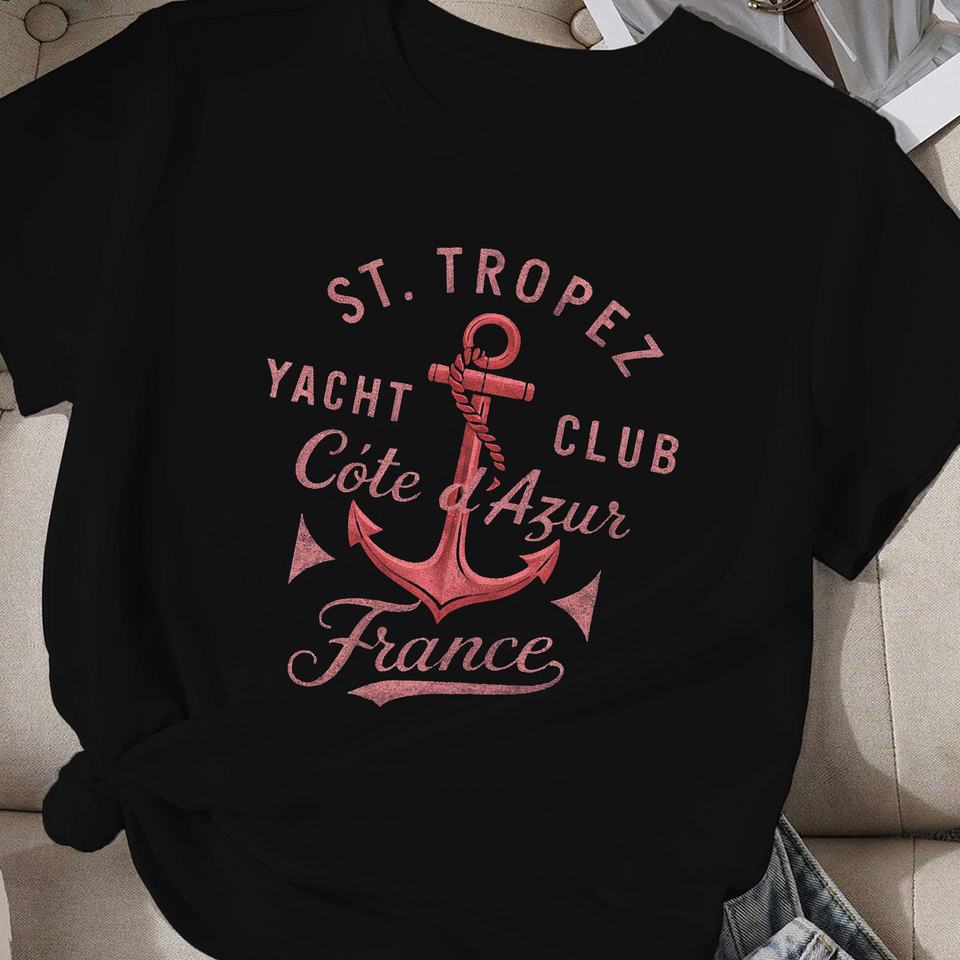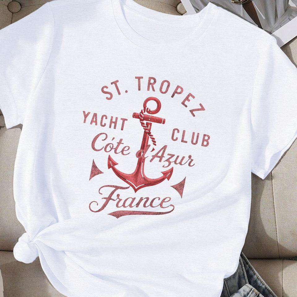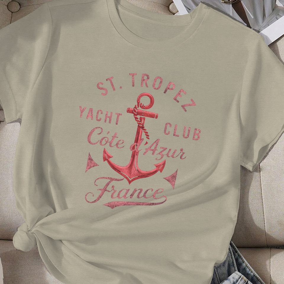 anchor ST TROPEZ vintage nautical theme women's comfit t-shirt
