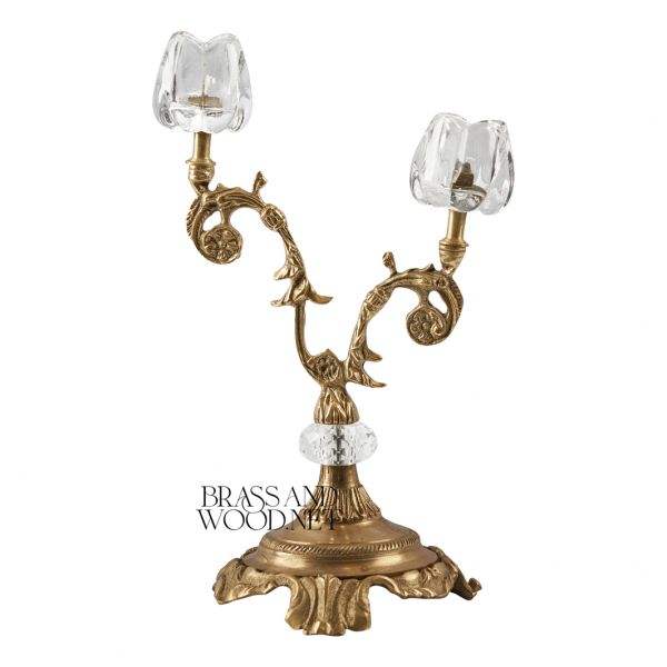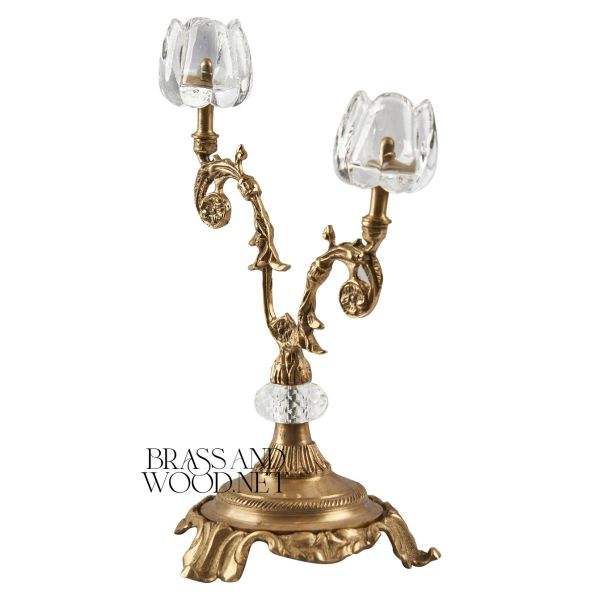 antique brass double arm crystal candle holder european classical luxury design for elegant home decor