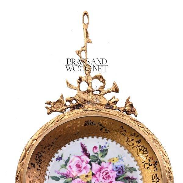 Cadre mural rond orné de laiton antique avec oeuvre florale en porcelaine décoration vintage faite à la main design en laiton vieilli de luxe