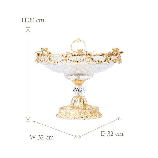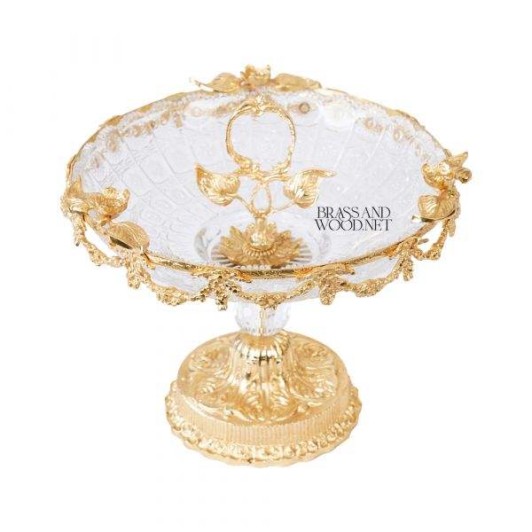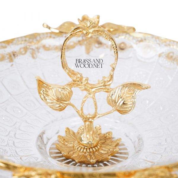 antique golden brass and crystal bowl decorative centerpiece luxury handmade design with ornate base elegant classic home