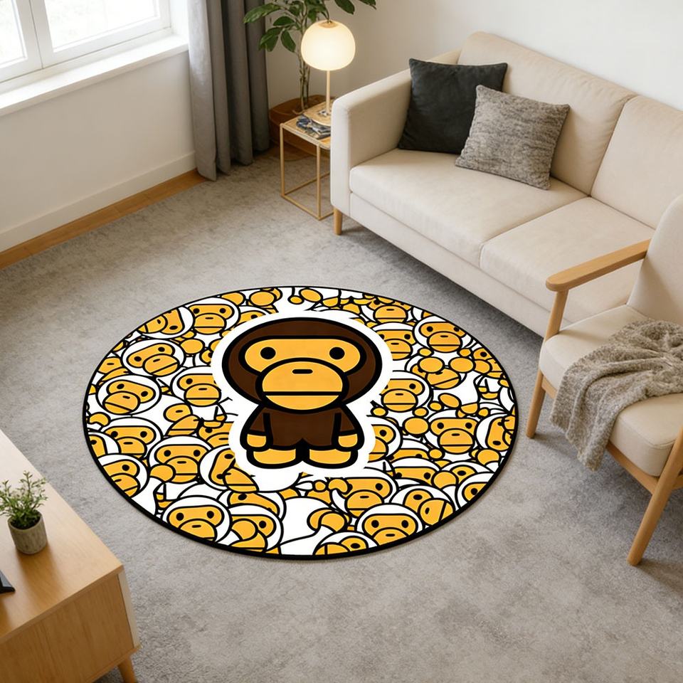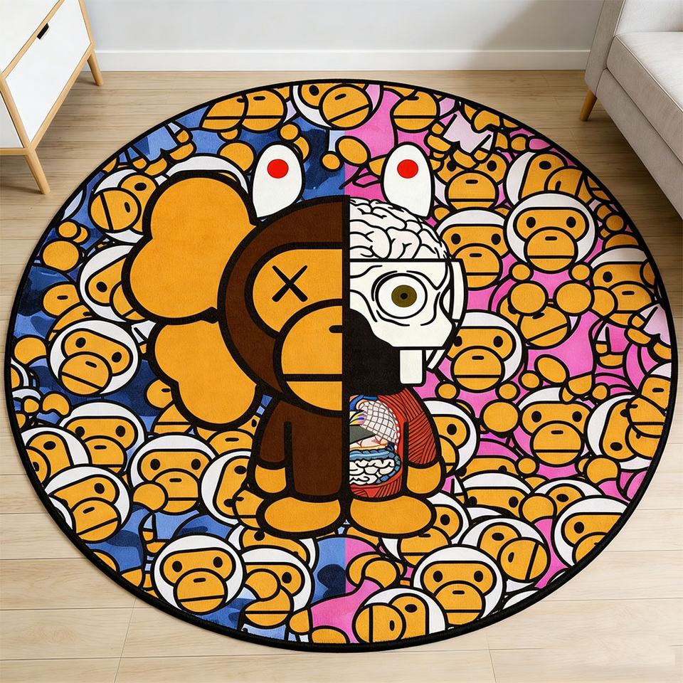 Tapis Bape en gros, tapis d'ours pour chambres, tapis ronds en velours doux style anime Bape Kaws, tapis circulaire imprimé personnalisé