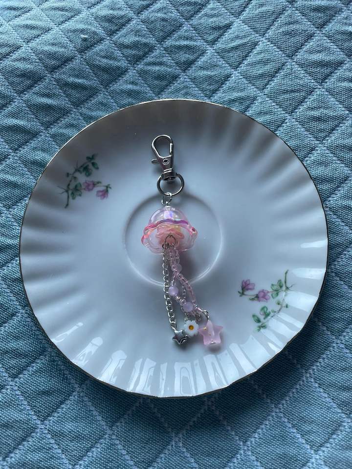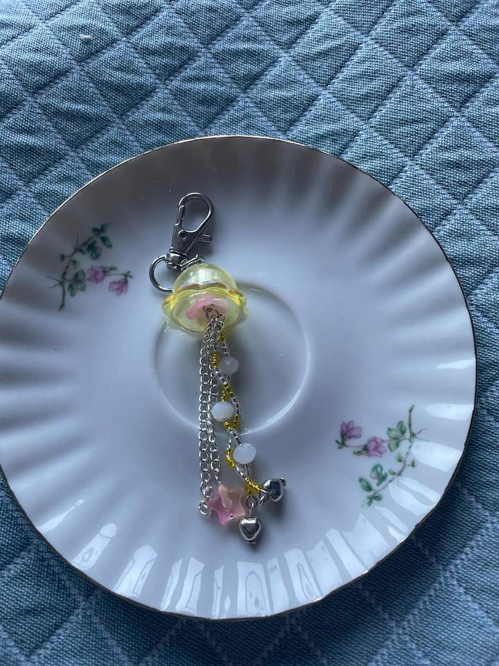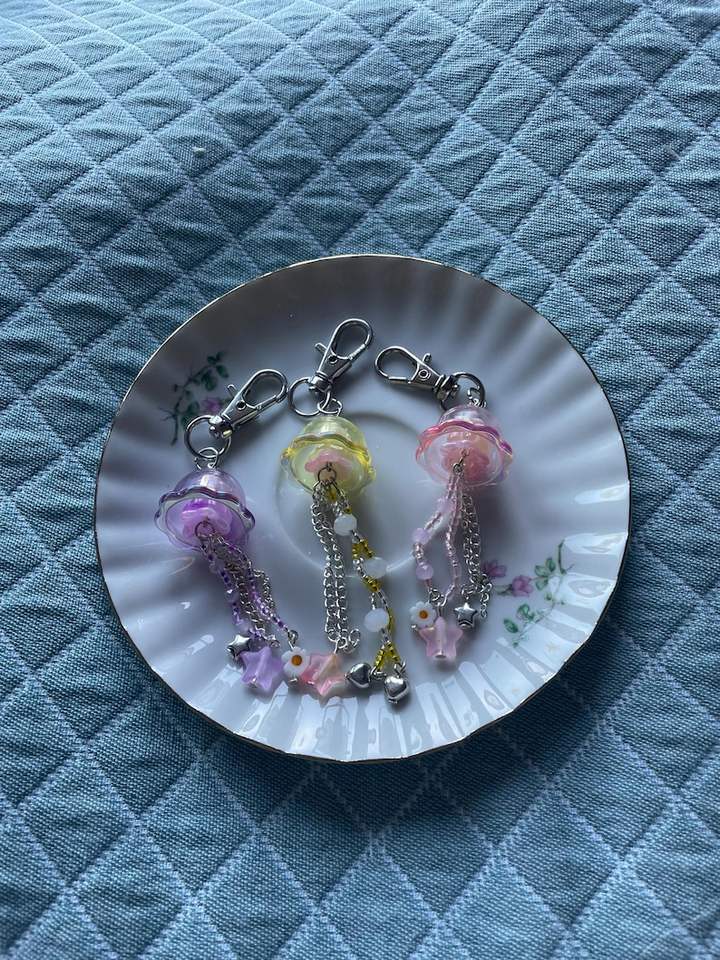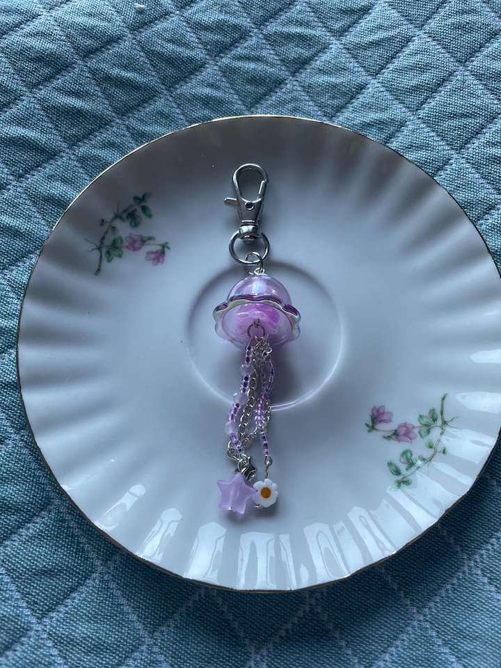 beaded jellyfish keychain. handmade beaded keychain. light color