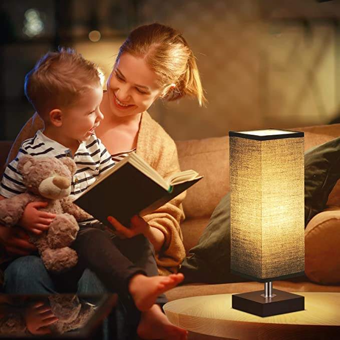 Lampe de chevet moderne, lampe de table pour chambre à coucher, lampe de chevet LED, abat-jour en tissu, lampe de lecture pour chambre à coucher