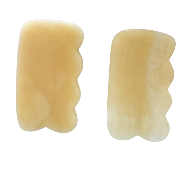 Nom du produit:Outils de grattage Gua Sha en jade jaune, de forme rectangulaire ondulée