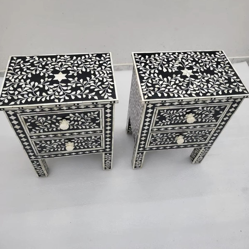 Meuble de rangement artisanal en bois avec incrustations en os, commode à tiroirs faite à la main pour salon, chambre et décoration de villa, artisanat en résine