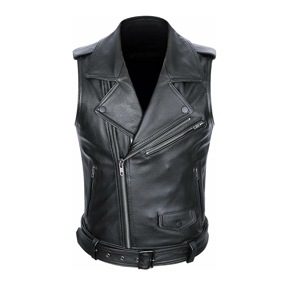 Gilet en cuir d'hiver classique respirant pour hommes élégant gilet en cuir à fermeture éclair sans manches avec ceinture