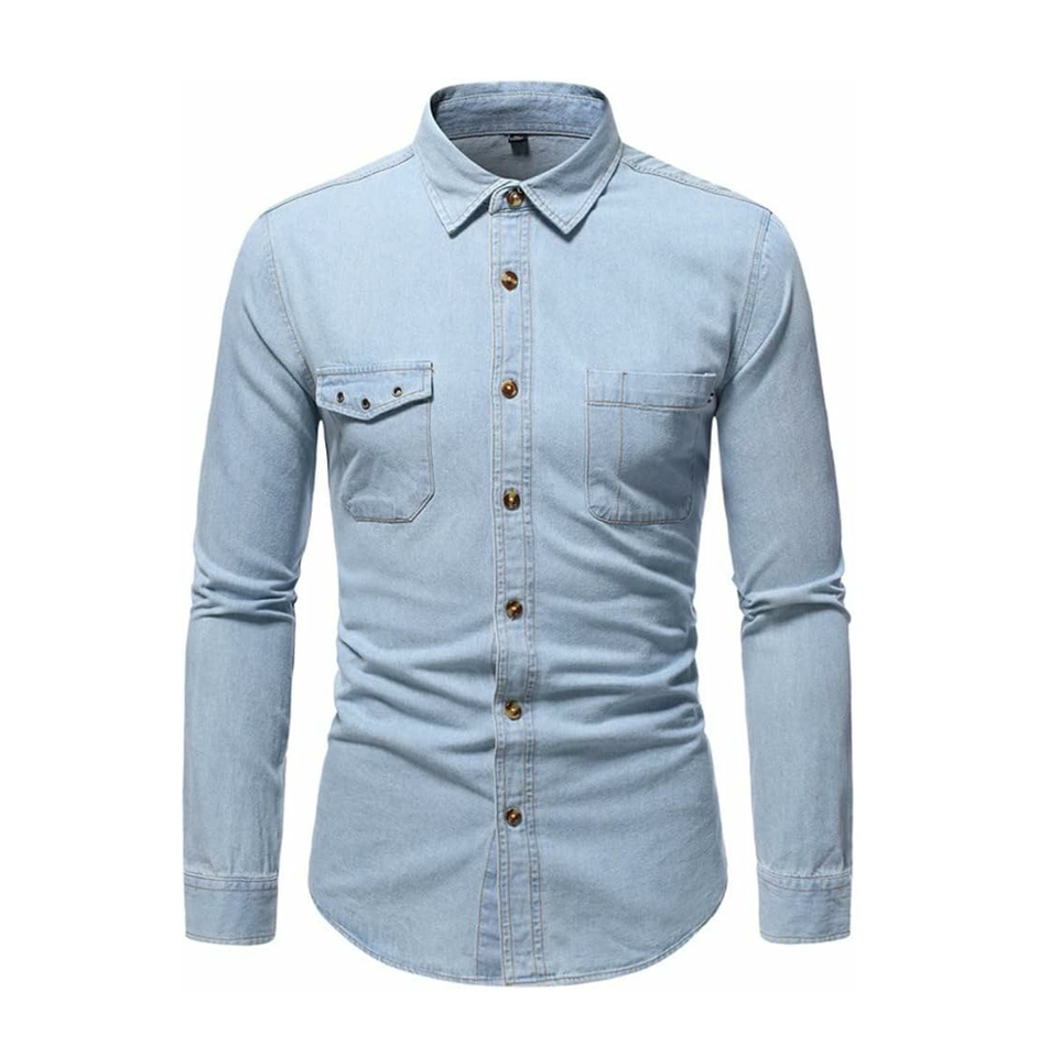 Chemises en jean pour hommes à manches longues en coton 100% respirant et doux, style décontracté chic 2024, col montant, anti-froissement, écologiques