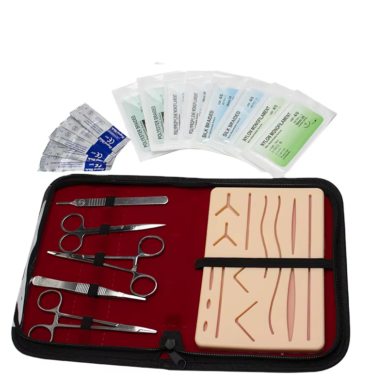 Kit de coussinets en silicone pour la pratique de suture de peau médicale le moins cher pour les étudiants kit de sutur de fabricant personnalisé, instrument médical