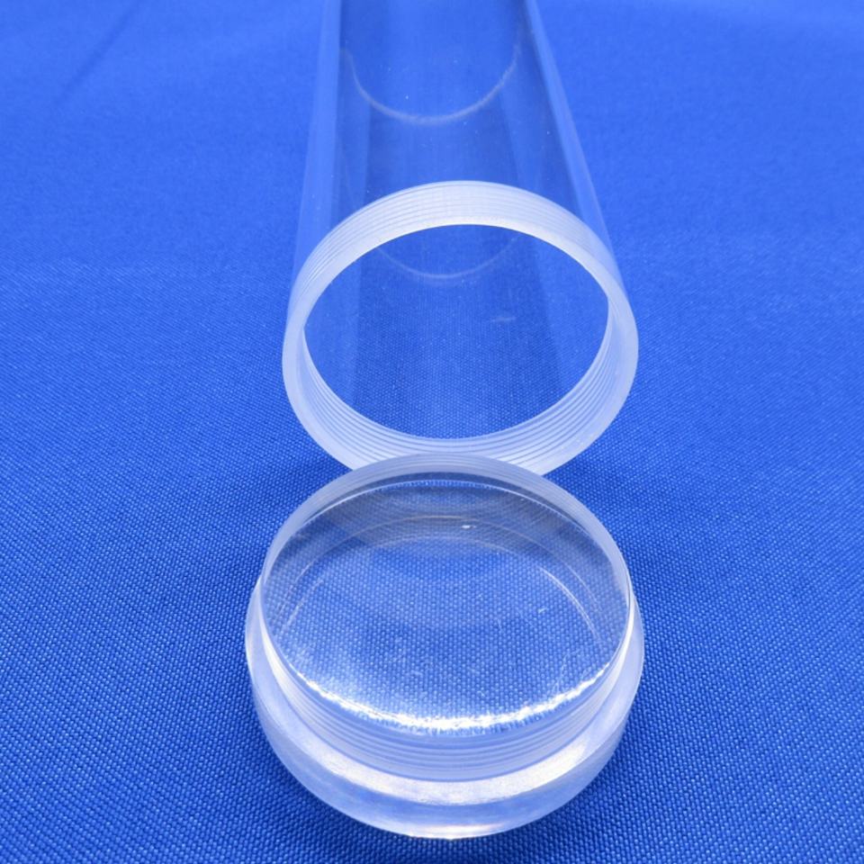 Tube en acrylique transparent avec vis extérieure et extrémité filetée, certifié anti-UV ROHS, longueur illimitée