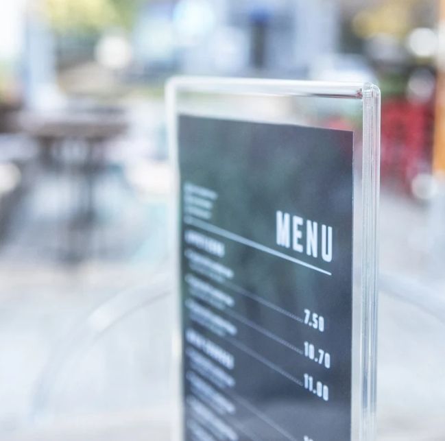 Porte-affiche en acrylique en plastique transparent Modèle de menu de table transparent, menu de barre, couverture de menu