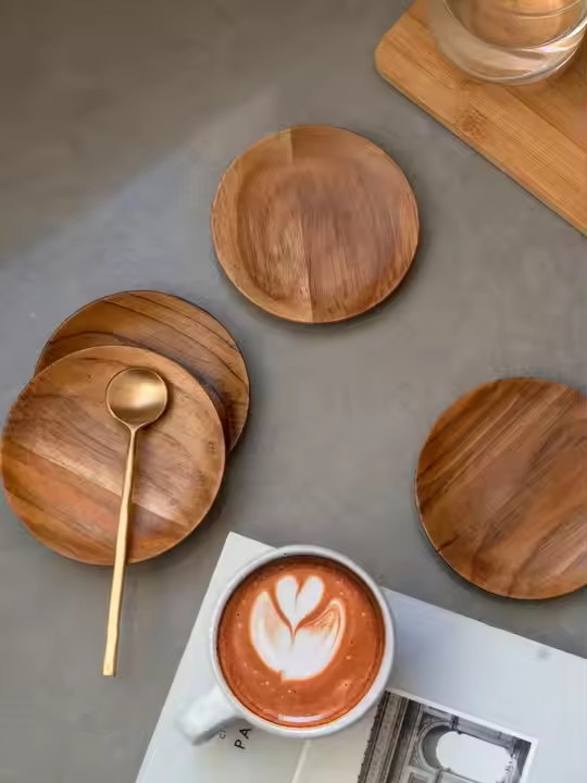 Sous-verres en bois de qualité supérieure Ensemble fait à la main Élégant et durable par l'artisanat en croissant