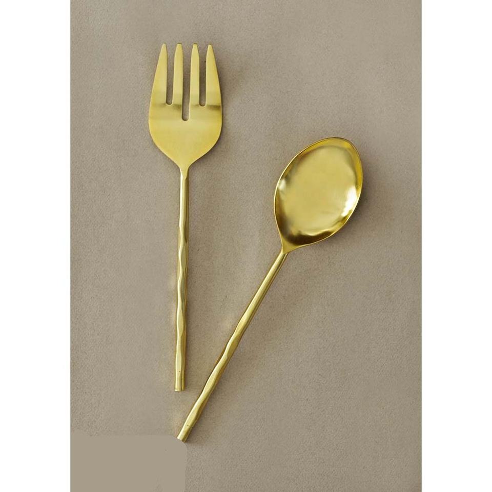 Café thé servant des ustensiles plaqués or avec des serveurs de cuillère à salade en or cuillères à soupe en acier inoxydable ensembles de couverts