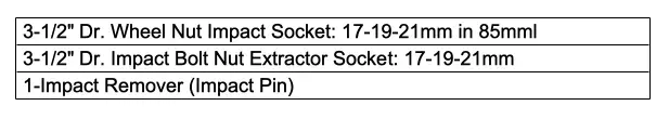 Roue d'impact, Douille d'écrou, Écrou de boulon d'impact, Prise d'extracteurOutil Comprend