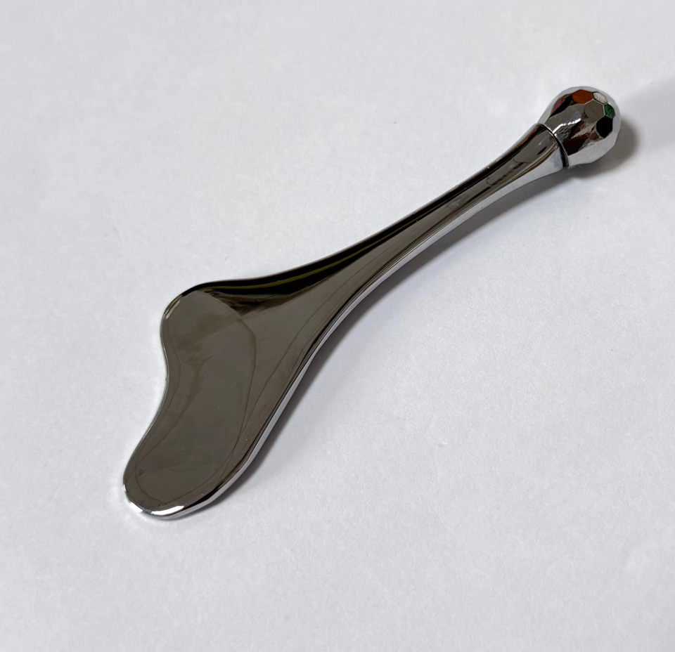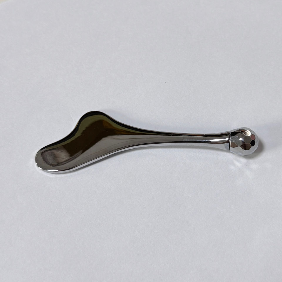 Product name:silver color metal gua sha face cream spoon with roller massager